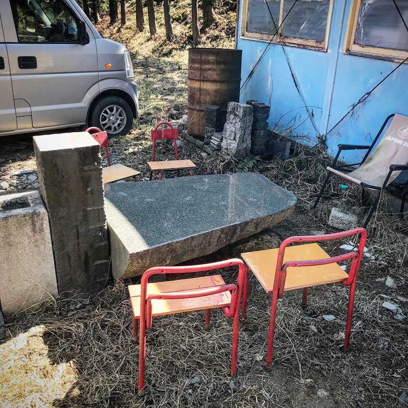 野外の石彫の仕事場。