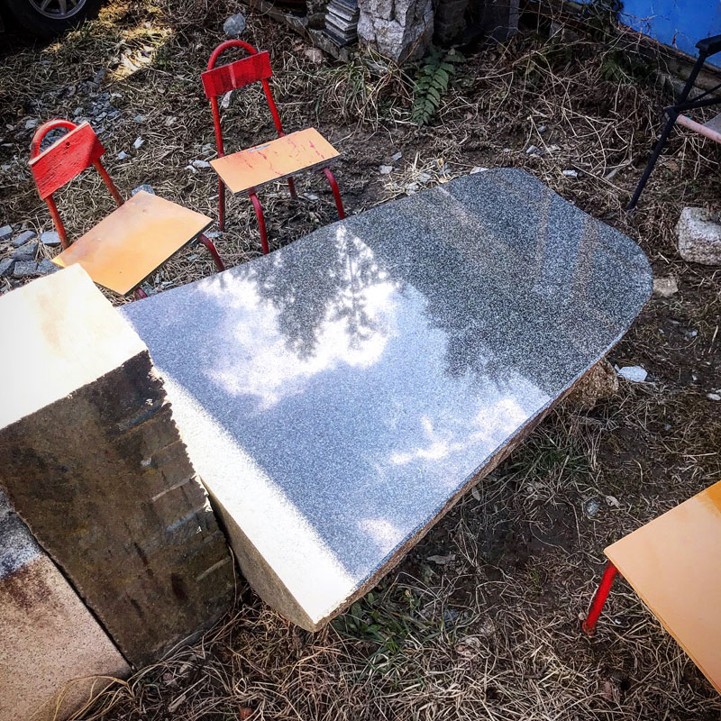 石テーブルに映る空。