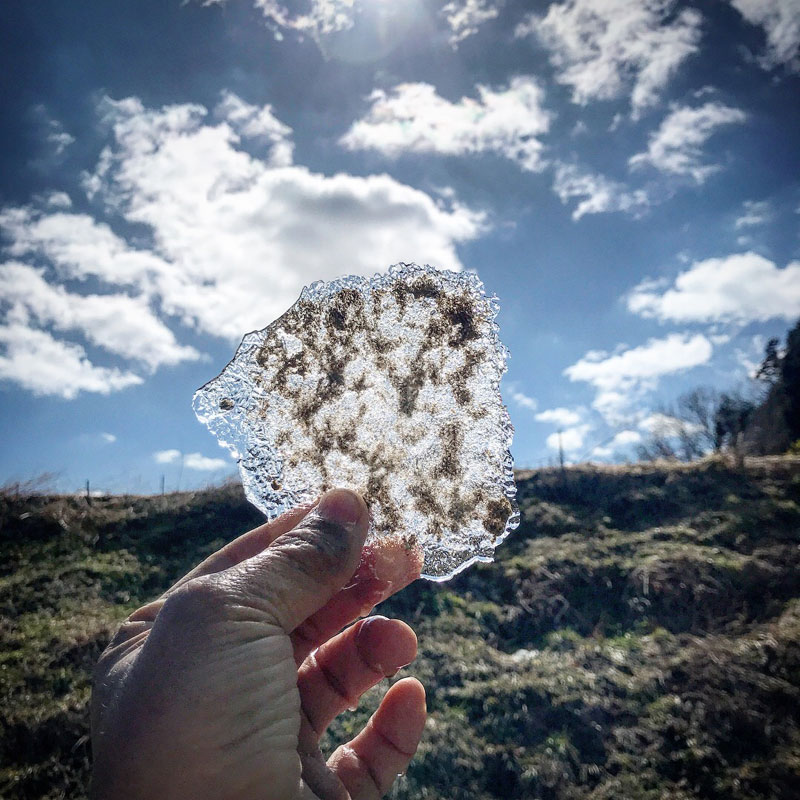 だけど空気の冷たい事!仕事場の石の手水鉢の水は凍ってた。