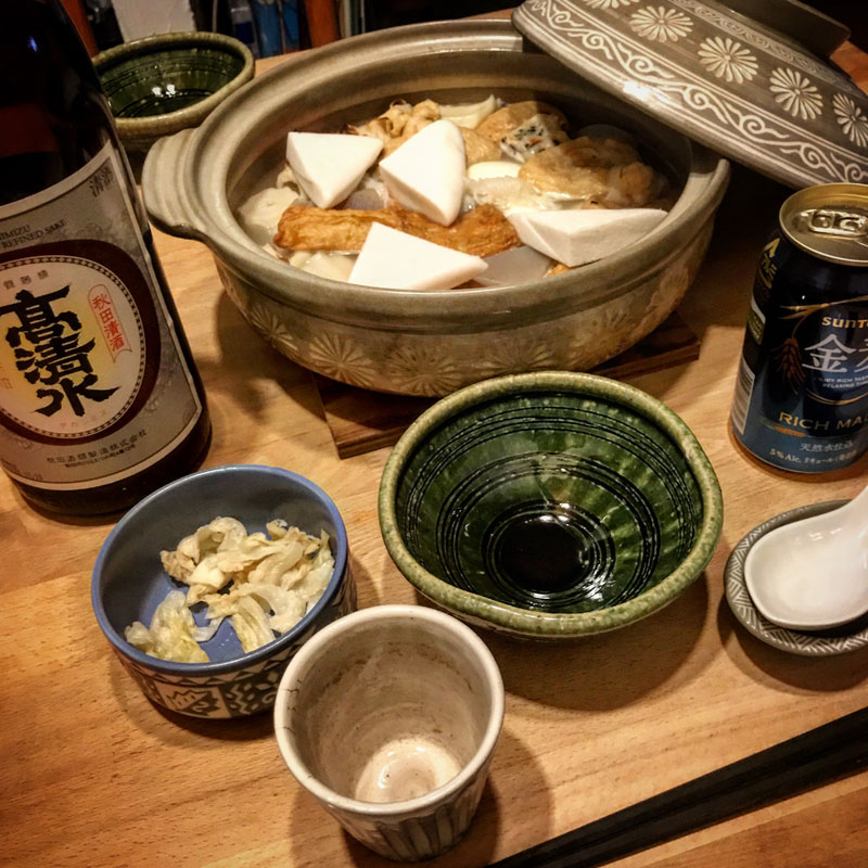 居酒屋我家、開店。おでん。目に映る景色は春の様だったけど、肌を刺す風は冷たく、手が凍えた。そんな日に嬉しいおでんだった。ありがとう!