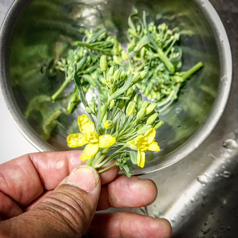 つぼみを摘んで、ほんの少し塩を入れたお湯で茹でた。