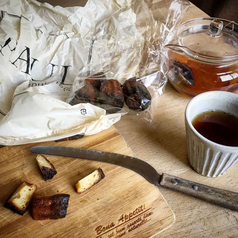 いつもカミさんが大宮駅のエキュートで買って来てくれるPAULのカヌレ。小さく小さく切って食べるのがお気に入り。美味しさが増す気がする。