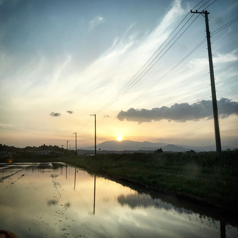 田んぼに水が入って鏡になって空を映す。