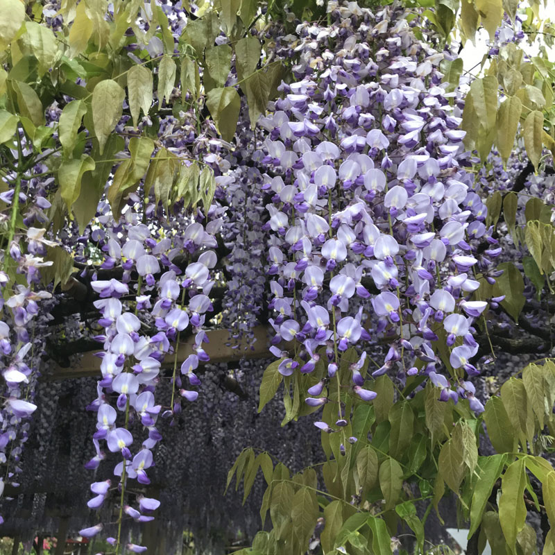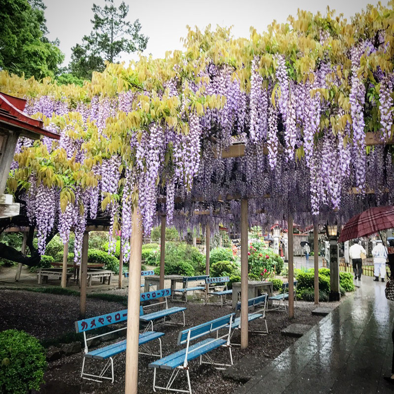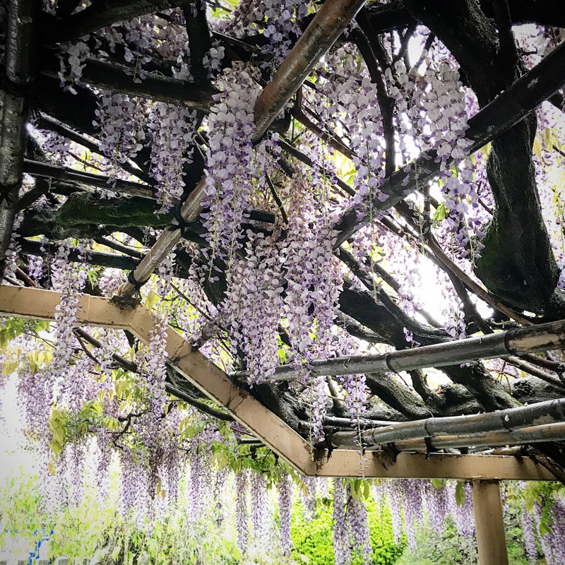 藤の下のベンチの「カメヤマローソク」は僕の父方の田舎。三重県の亀山市で作ってる有名なロウソク。ずいぶん行ってないな。