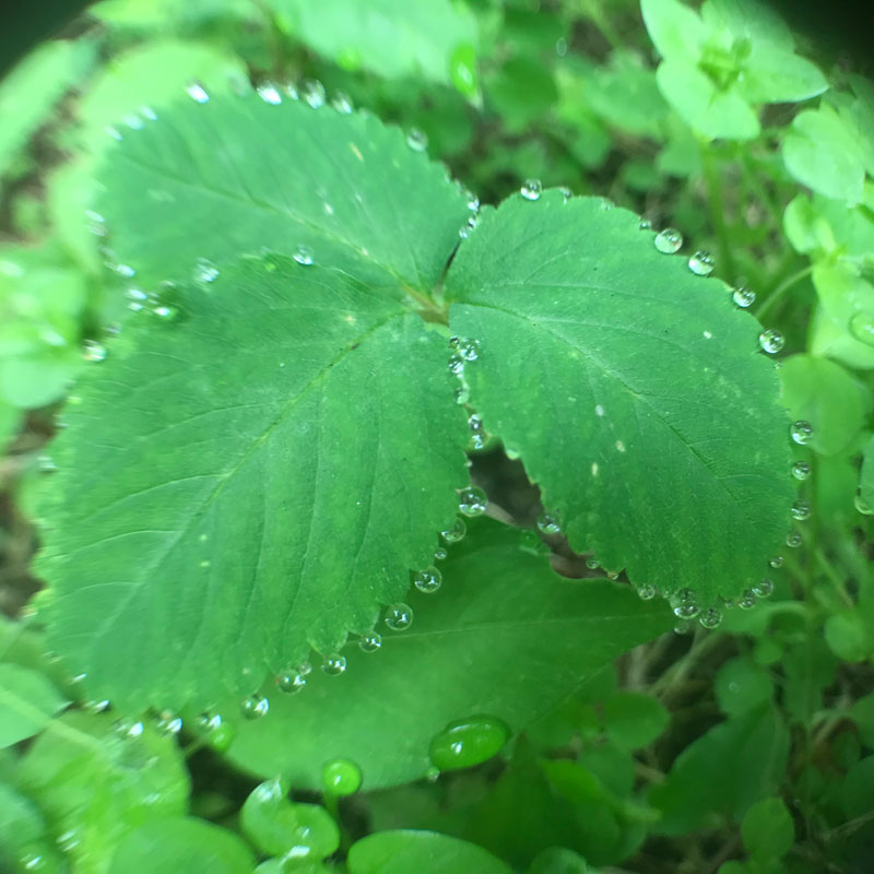 正確に言うと葉に朝露がついたんじゃ無いんだよね。植物が吸った水が滲み出たもの。
