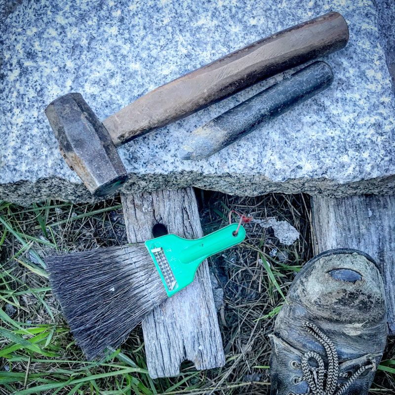 ノミ仕事。防弾ガラスの保護メガネだけかけてれば、いつもの耳栓もマスクもしなくて良いから青空の下、気持ちがいい。機械の音も無いので鳥の声を聞きながら。でも明日はガンガン機械仕事だな。