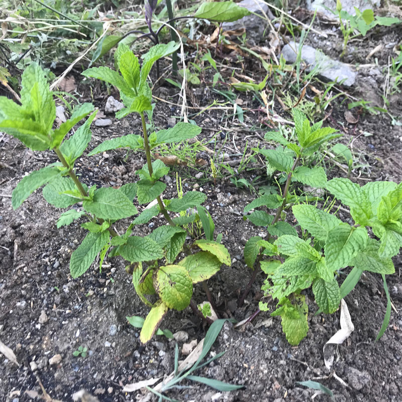 夏の暑い日にに飲みたくなるミントジュレツプのために植えてあるミントも元気。