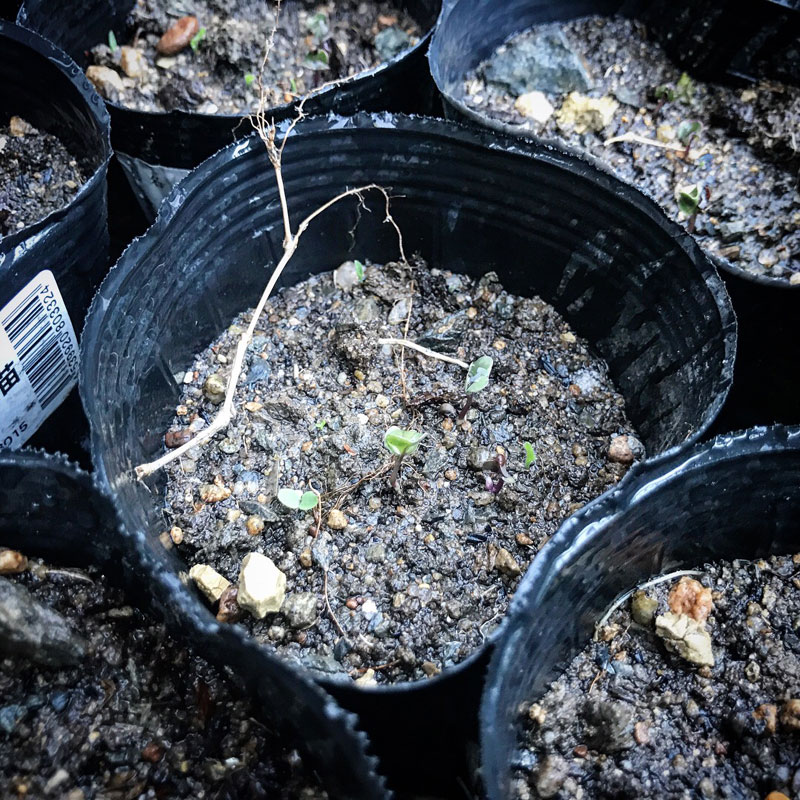 ポットに撒いたコールラビは発芽した。