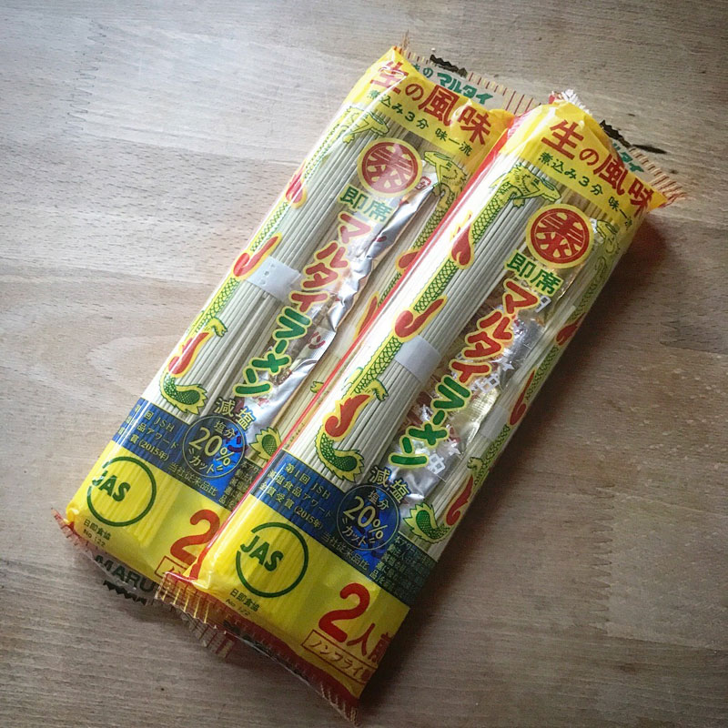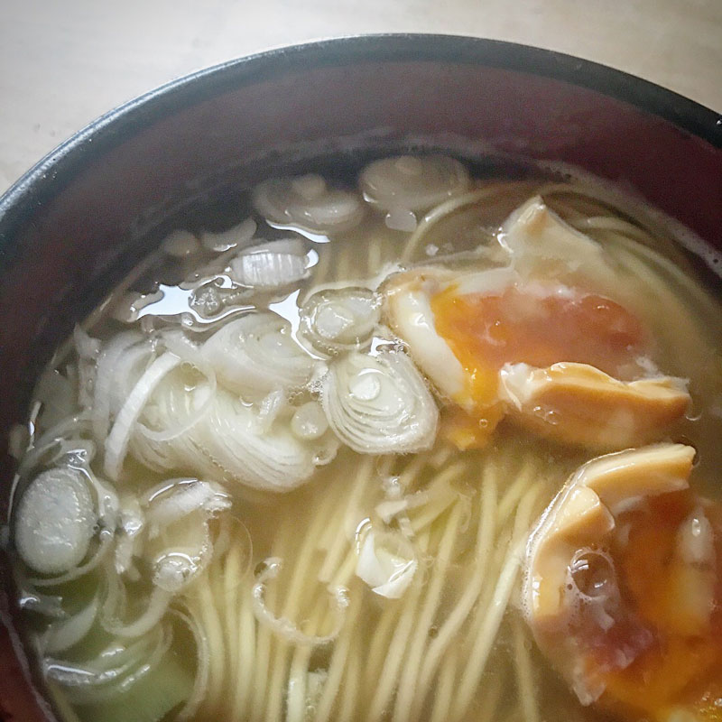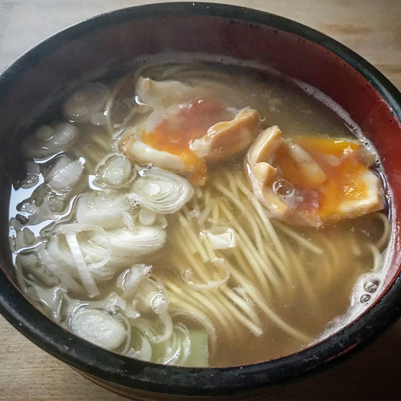 マルタイラーメン 今日は小細工せずに急いで作った味玉と長ネギをトッピングしただけで。
