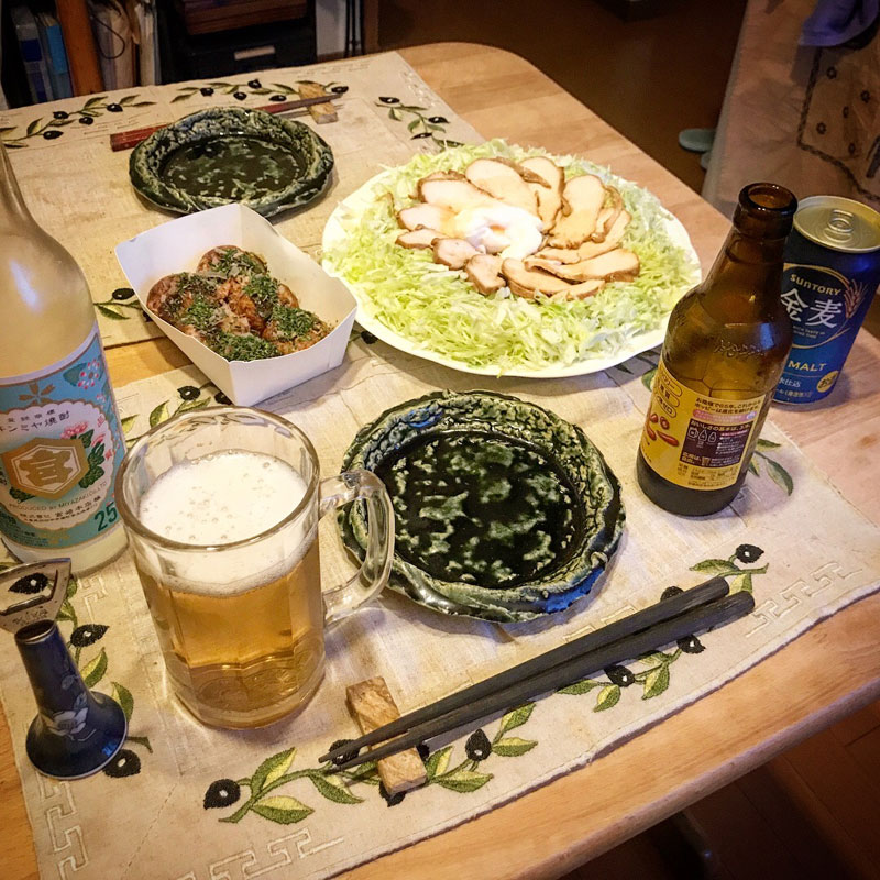 エンドウ豆とジャイアントコーン 今日は一日曇ってる。 豆ご飯にできるのを待ってる。 枝豆ぐんぐん。 居酒屋我家、開店。 鶏肉の土鍋煮と大量の千切りキャベツ。いつもカミさんが出張の時に作りおいていってもらうメニュー。なのでカミさんと一緒に食べるのは珍しい。大好きなんである。冷凍のたこ焼き。 我家でブームのジャイアントコーンはやまやで100円! 2018年6月6日 | コメントはまだありません | カテゴリー: おいしい