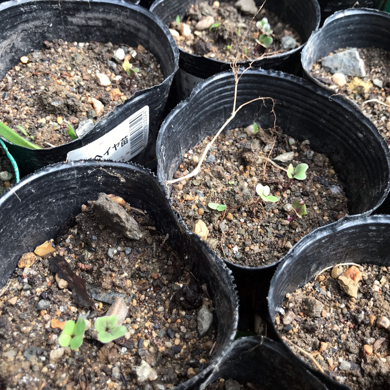 ポットに播いたコールラビ、順調。