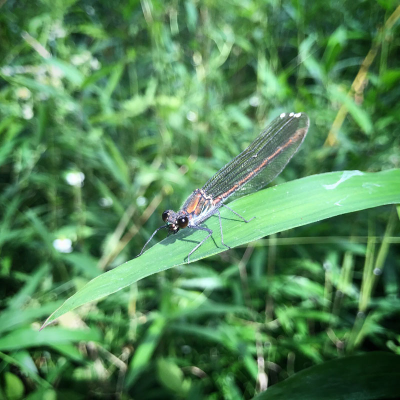 仕事場の刈り残し草原に糸トンボ。