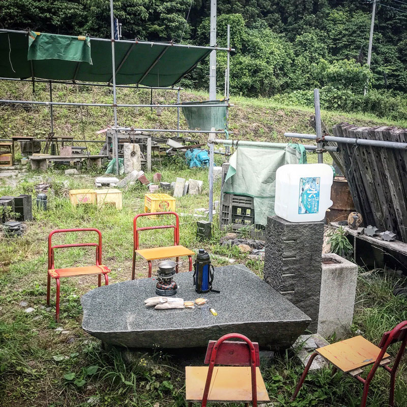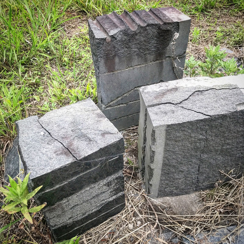 WARE(割れ)はメインの手法のひとつなので仕事場にはいろんな形に割ったいろんな石が作品になる日を待っている。