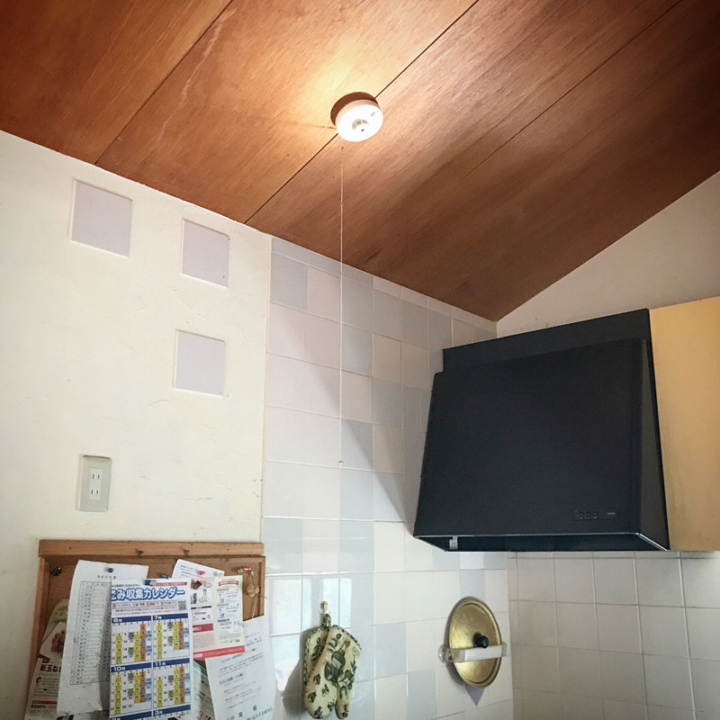 ピンポイントで火災報知機に当たってる。
