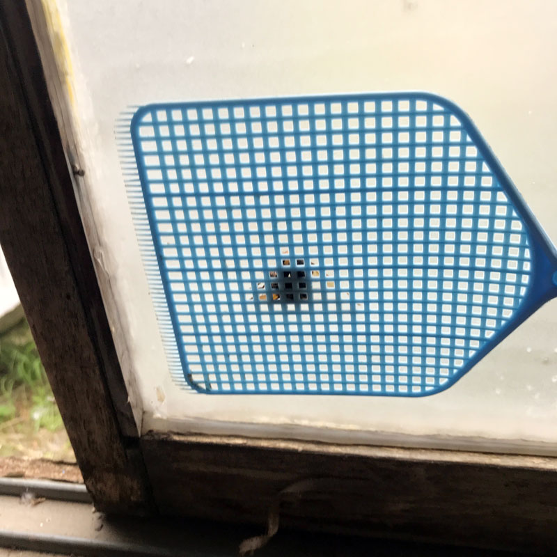 午後の仕事場でプレハブにスズメバチが入って来た。逃げ場無くて焦ったけど100円シップで買って置いてあったハエたたきがすぐ近くに。