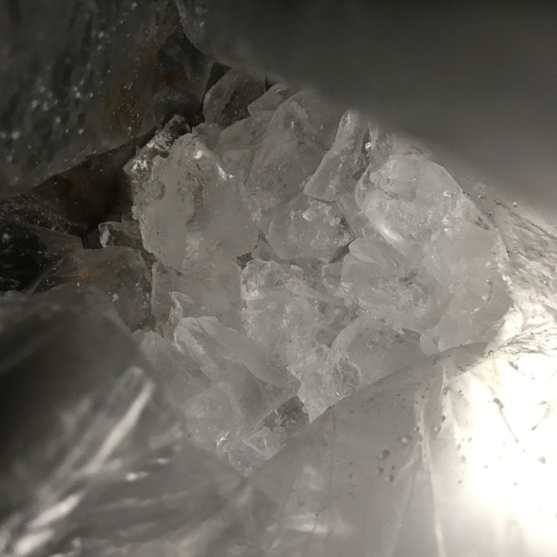 冷蔵庫の氷を袋に入れて叩いてクラッシュドアイス作ってグラスに。