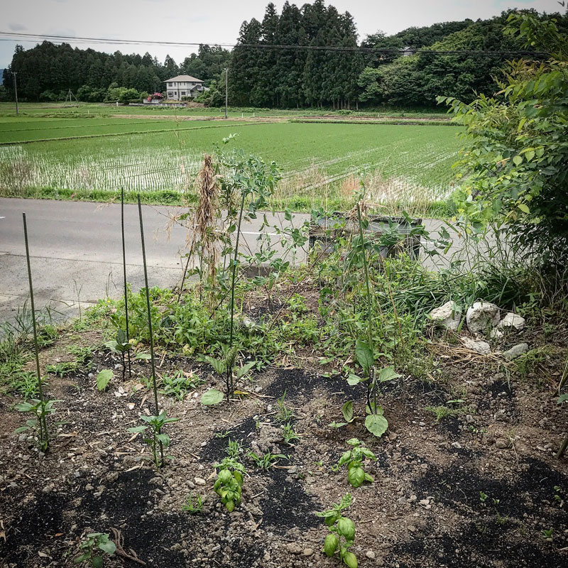 枝豆も一斉に発芽した。#庭の猫の額畑