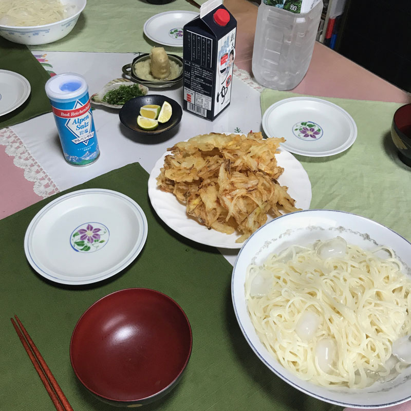 昼食にひやむぎ作ってもらう。