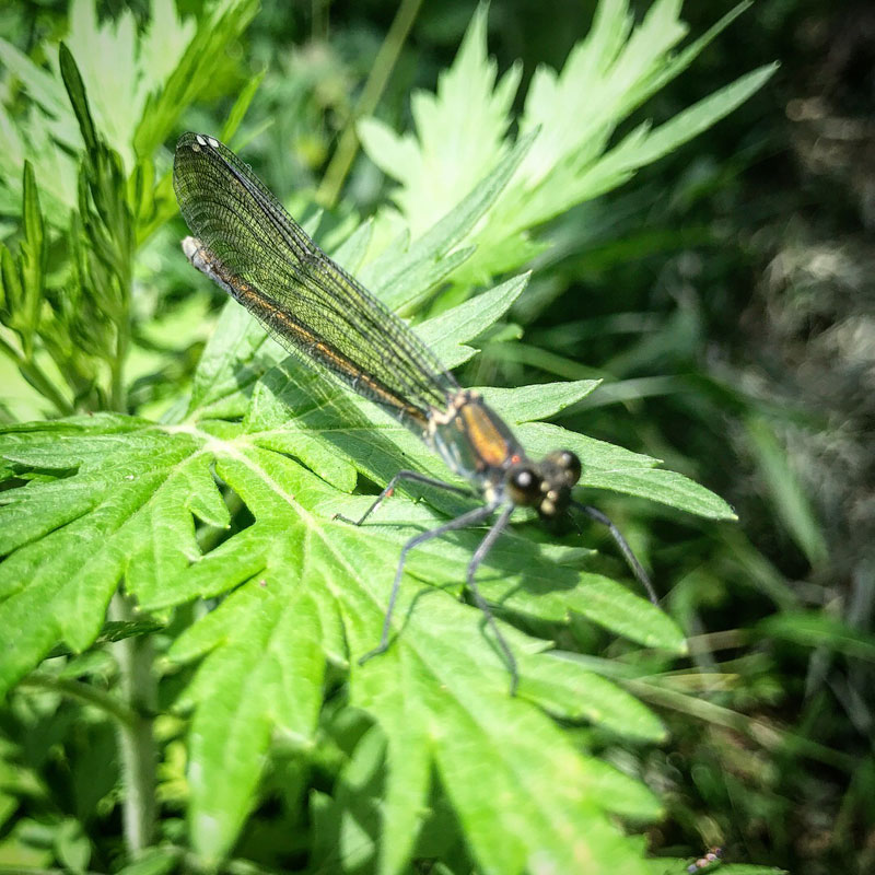 仕事場の虫たちのために草刈りしないでおいた一画に遊びに来た糸トンボ その1