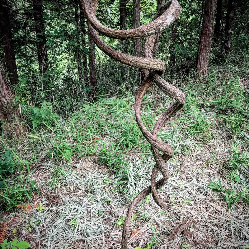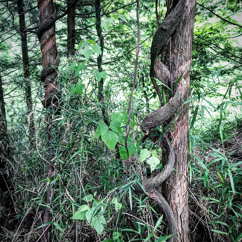 仕事場の縁に植林された杉の木のほとんどが太い葛に巻かれて締め上げられていたのを去年、根元から切っておいた。