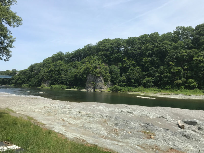 その家からすぐの川に降りてみる。良い感じの川原だ。石を投げてみたけど3回しか飛ばせなかった。