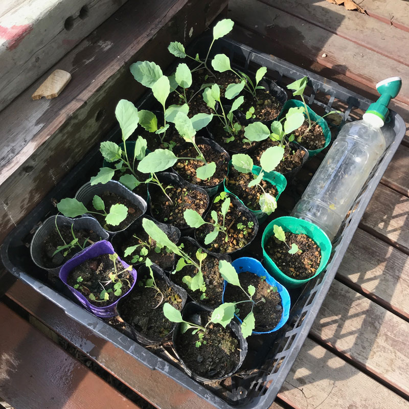 夏の終わりに畑に移植しようと思ってるコールラビ。