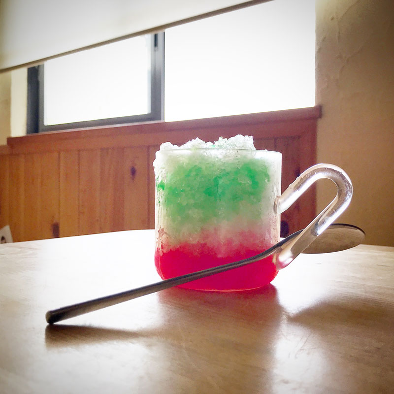 もう何日猛暑が続いてるんだろう。現在の気温34℃。明日は体温超えの38℃らしい。ここは東北です。今日のかき氷、2色かけたった!
