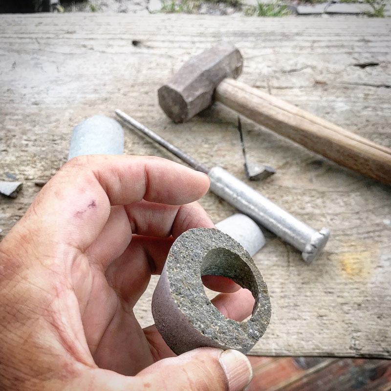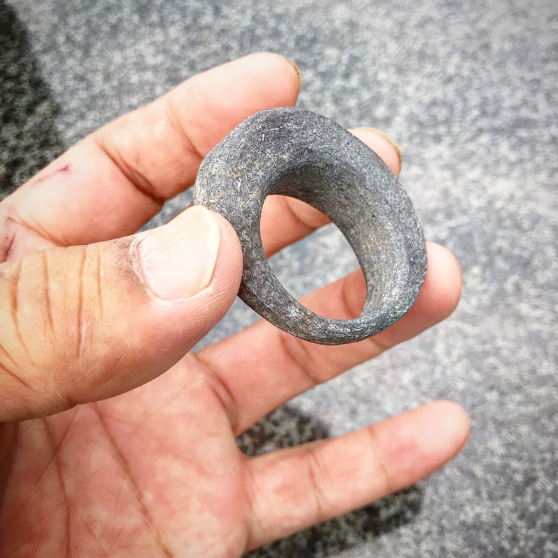 夕方、完成予定の作品をふたつも壊してしまって、手持ち無沙汰で、折れる限界の細さの石のリング作ってみた。