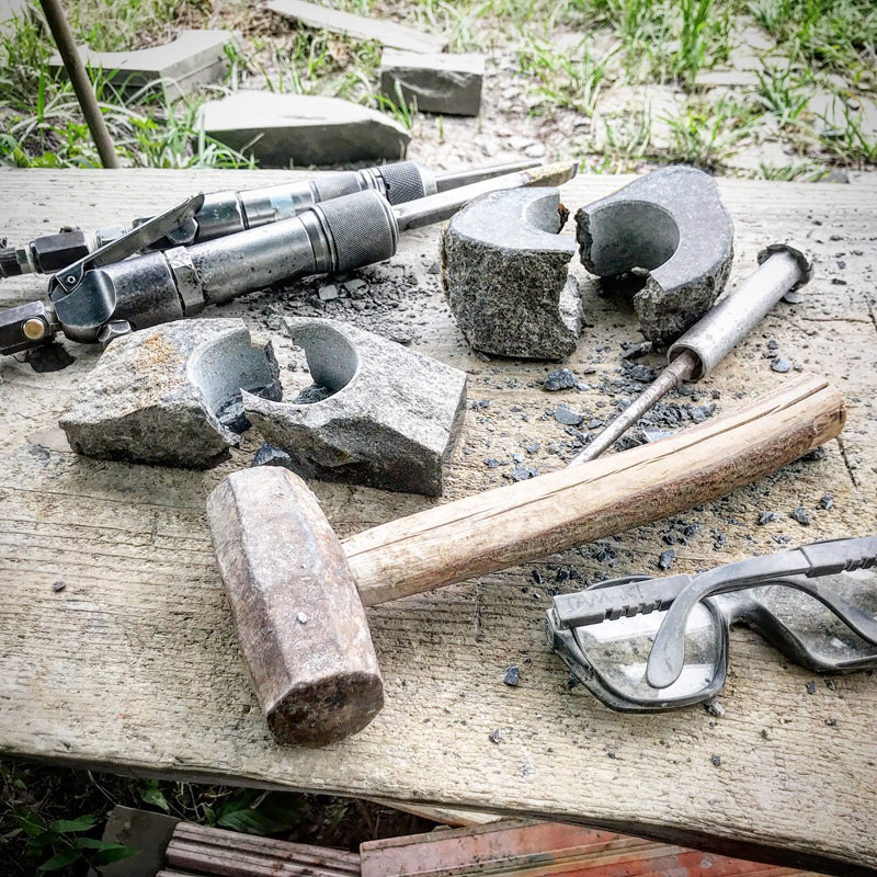 いや、自分がまだまだ未熟者なだけ。でも、集中力は体力。若い時の様に長い時間は続かない。それも言い訳だ。自戒を込めてアップして秋の個展のための花器の制作は打ち止め。明日からは彫刻の制作に戻ろう。ここまで何日もかけて、大きな石を切り分け、形にして穴を開けて午前中いっぱいかかって磨いていた。
