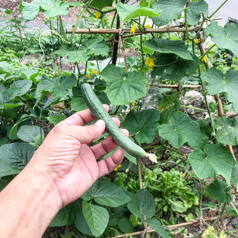 こんなに小さい畑は野菜が育って葉が大きくなってきたので中に分け入って収穫するのも大変。