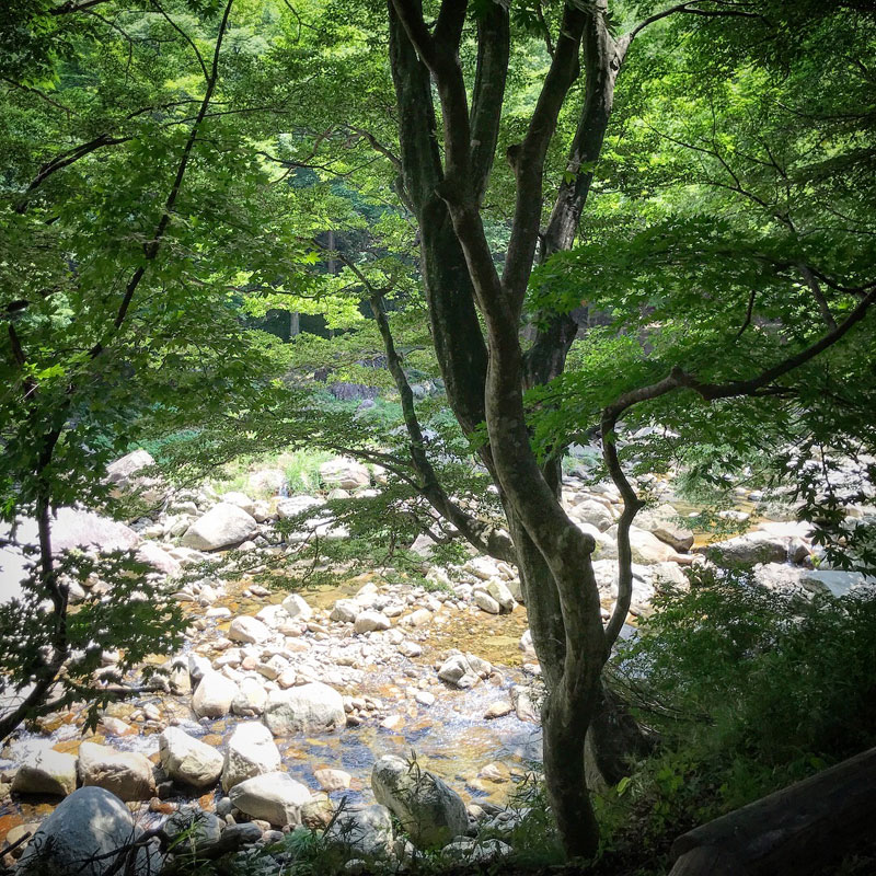 途中、自作の野外彫刻「山河」見ながら車を走らせて