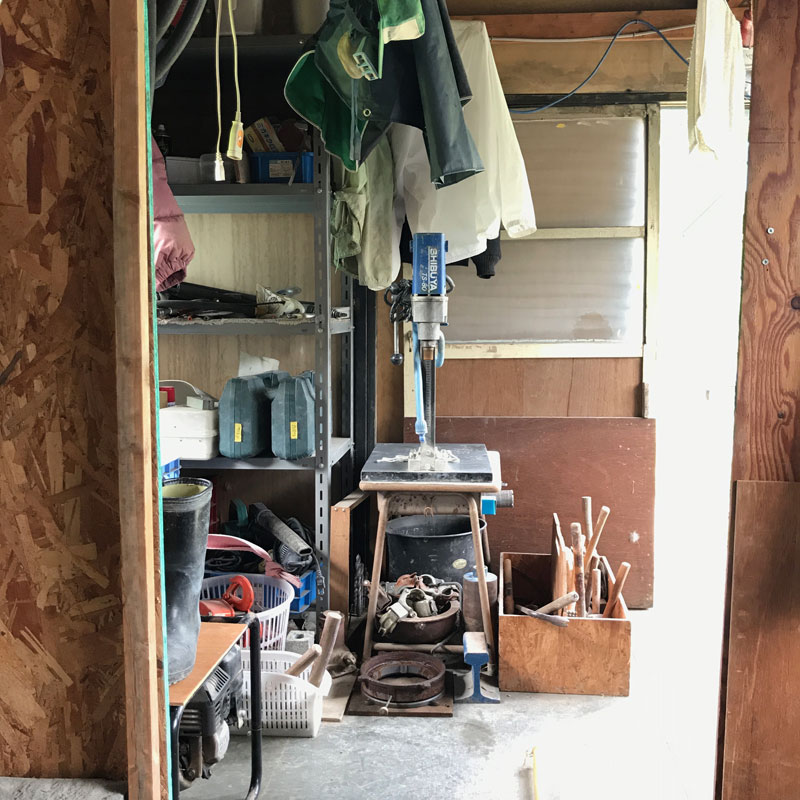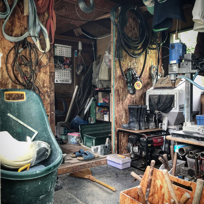石を彫り始めたばかりの頃、今は亡き仁さんが「おまえ、道具全部車に積んでるけど、仕事場において置かれるようにプレハブいっか?」って言ってある日の昼休みを終えて仕事場に戻ったら建ってた。