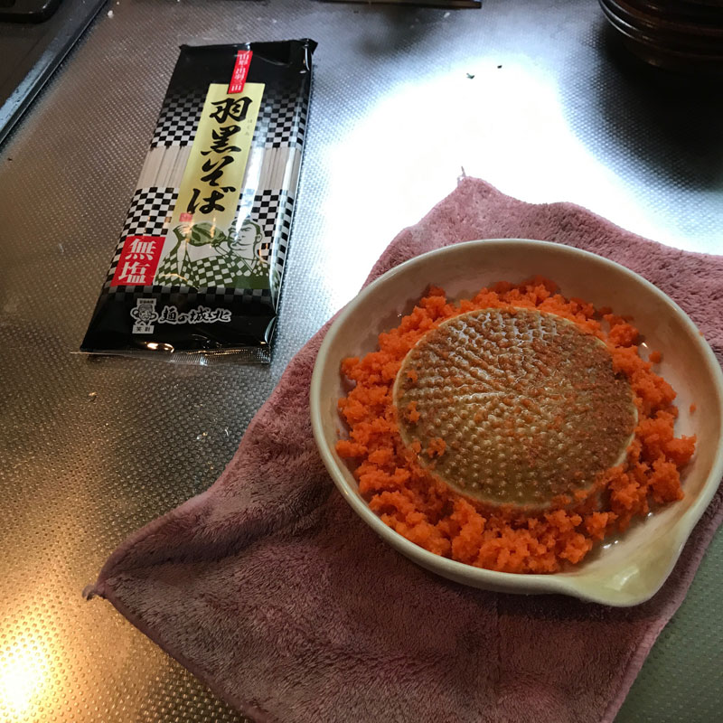 昼は簡単に蕎麦で済ませる。野菜がなかったので人参擦って