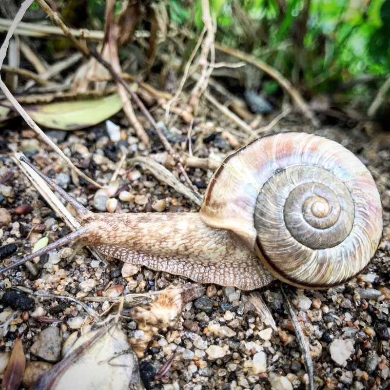 カタツムリ。なんか久しぶりに見たな。そして今ではもうさわりたくない。子どもの頃は捕まえまくったのに。