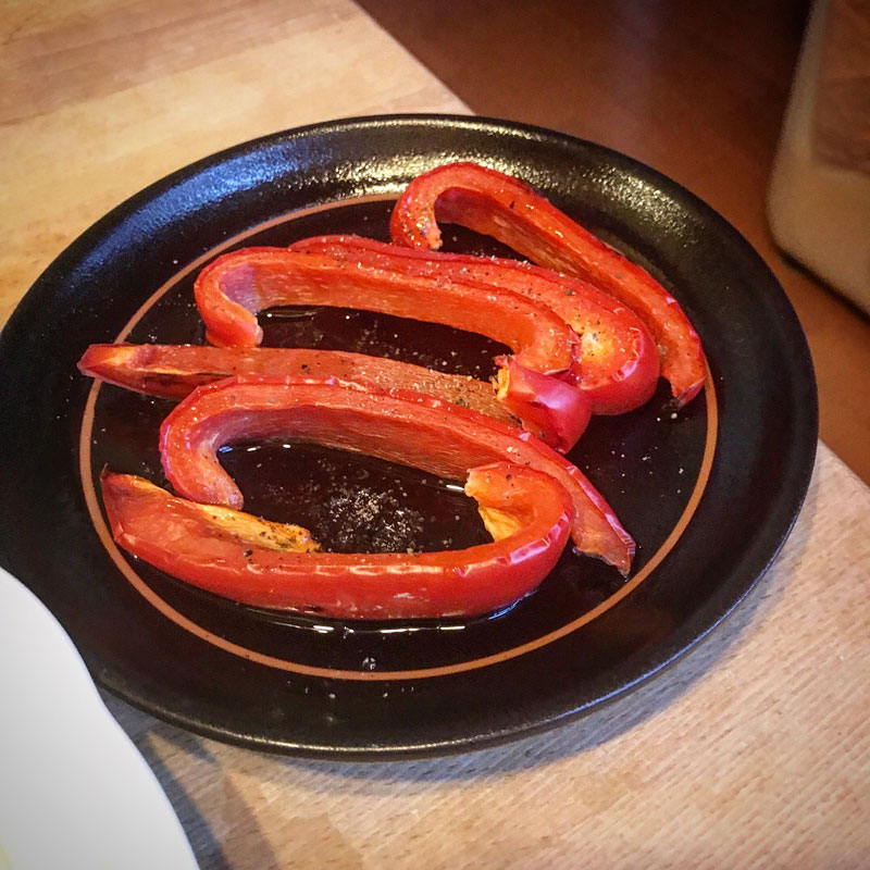 宮城のパプリカ焼きにオリーブオイルと塩をかけて。