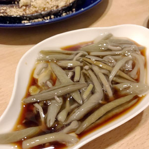 大好きなじゅんさい。わさび醤油でそのままいただくのが大好物。