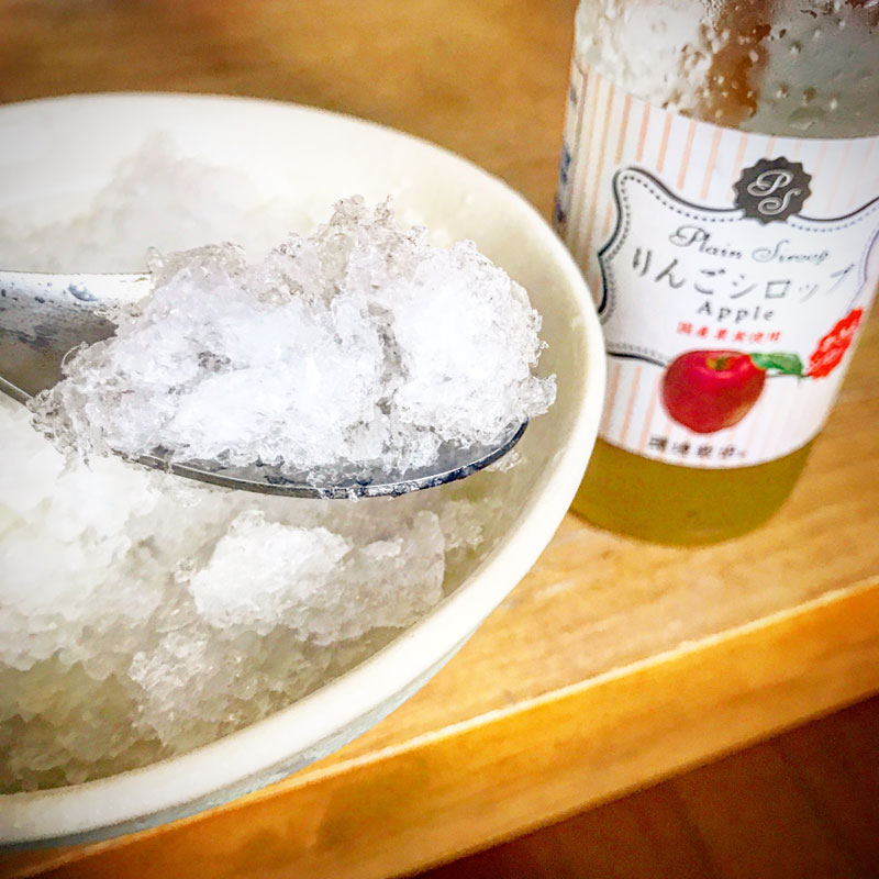 超不愉快。昼食に戻って今日も信州自然王国 のりんごシロップでかき氷。かき氷食わないとやってられない!