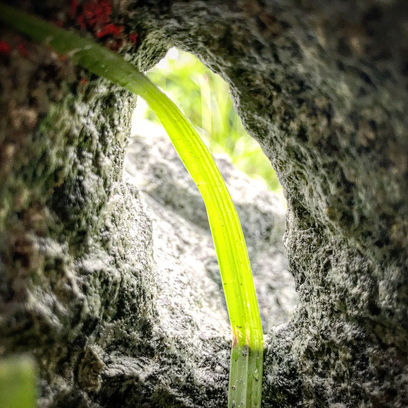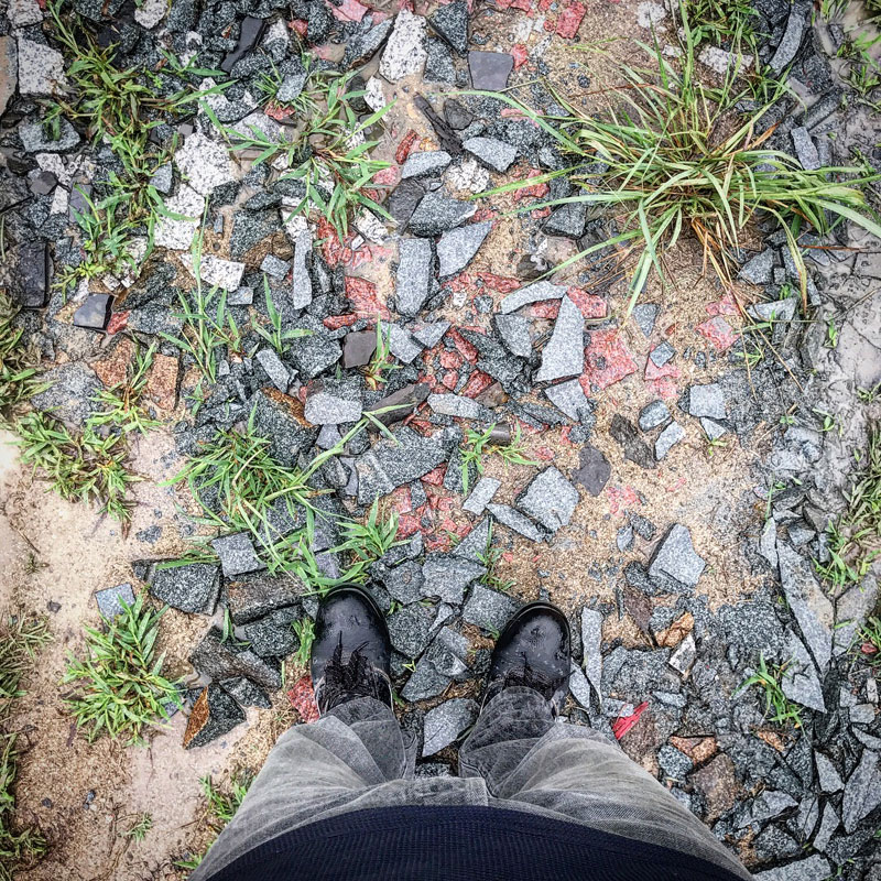 いろんな色の石のカケラ。雨で色が鮮やかになる。