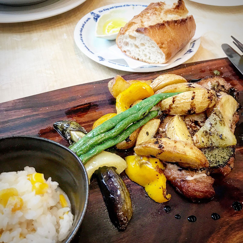 バゲットに添えられたオリーブオイルにはレモングラスの香り。とうもろこしのリゾットも絶品。