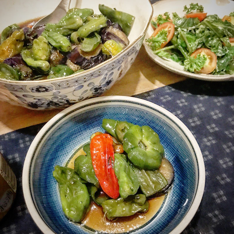 ししとう、茄子、ピーマンの揚げ浸し。