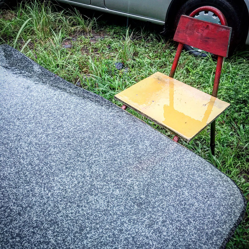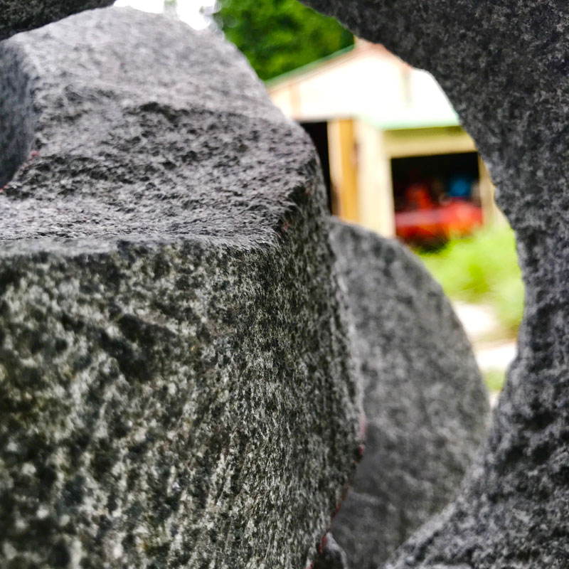 制作中の石はテントの下に置いたままで帰る。重くて簡単には持ち運べなかった、というのもあるけど。今日、石の塊は「彫刻」になった。帰る前にプレハブ小屋にきちんとしまった。