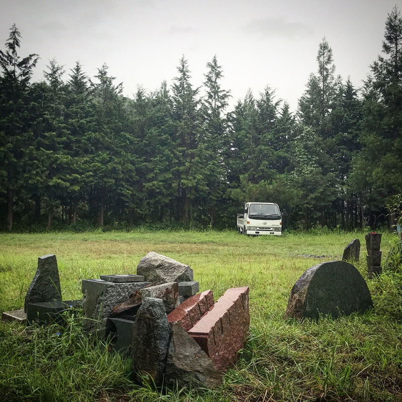 石彫ってたらでかいスズメバチ。じっと動かないで息を潜めてたら頭に止まった。さすがにプレハブ小屋に避難。ラジオをつけてちょっと一服。怖いよ!