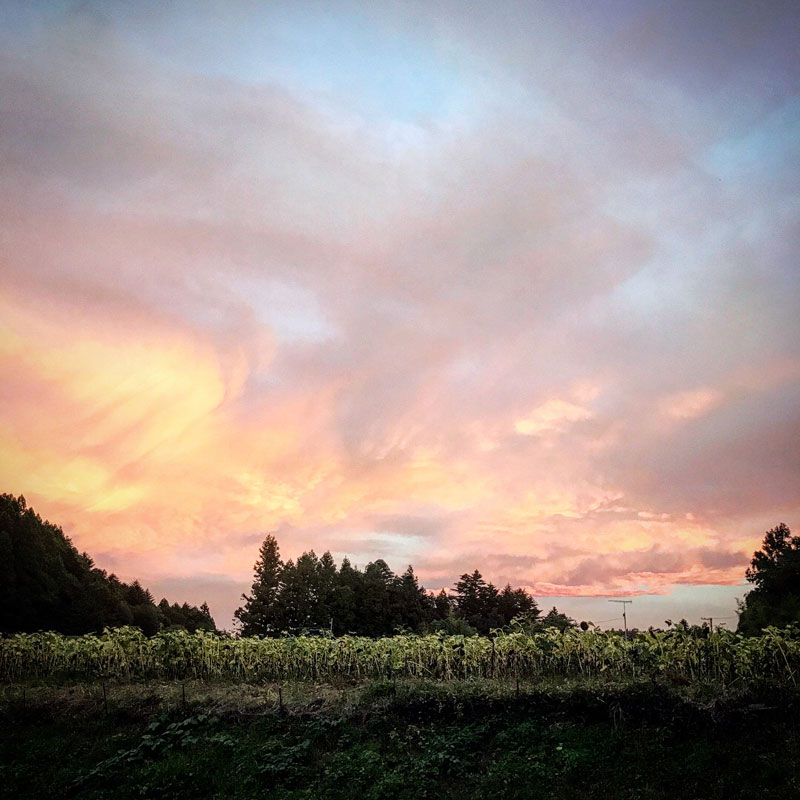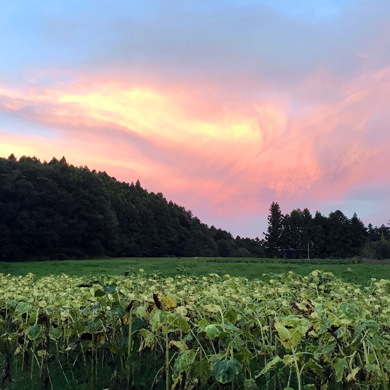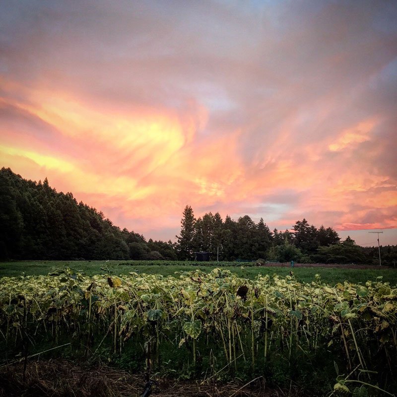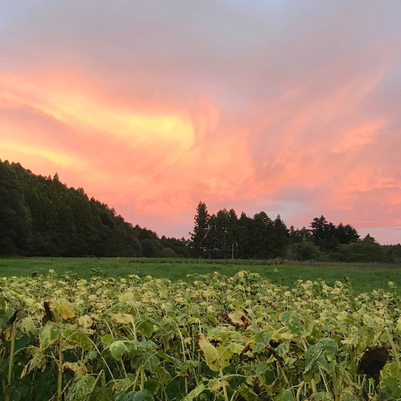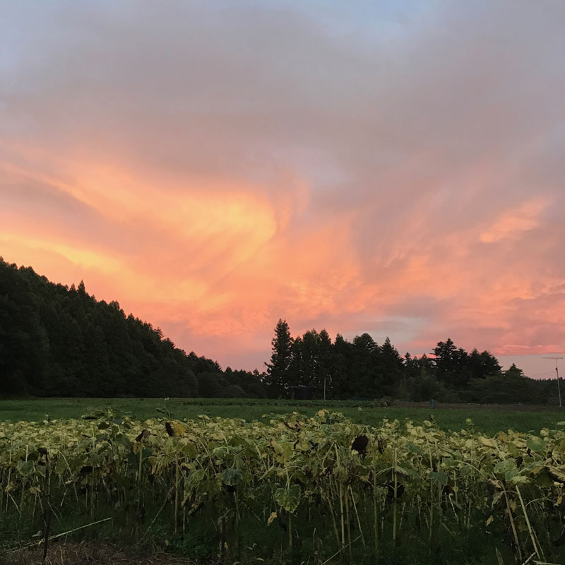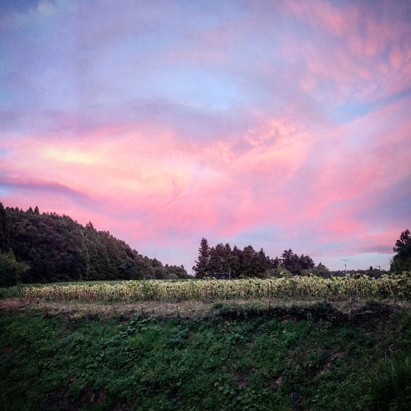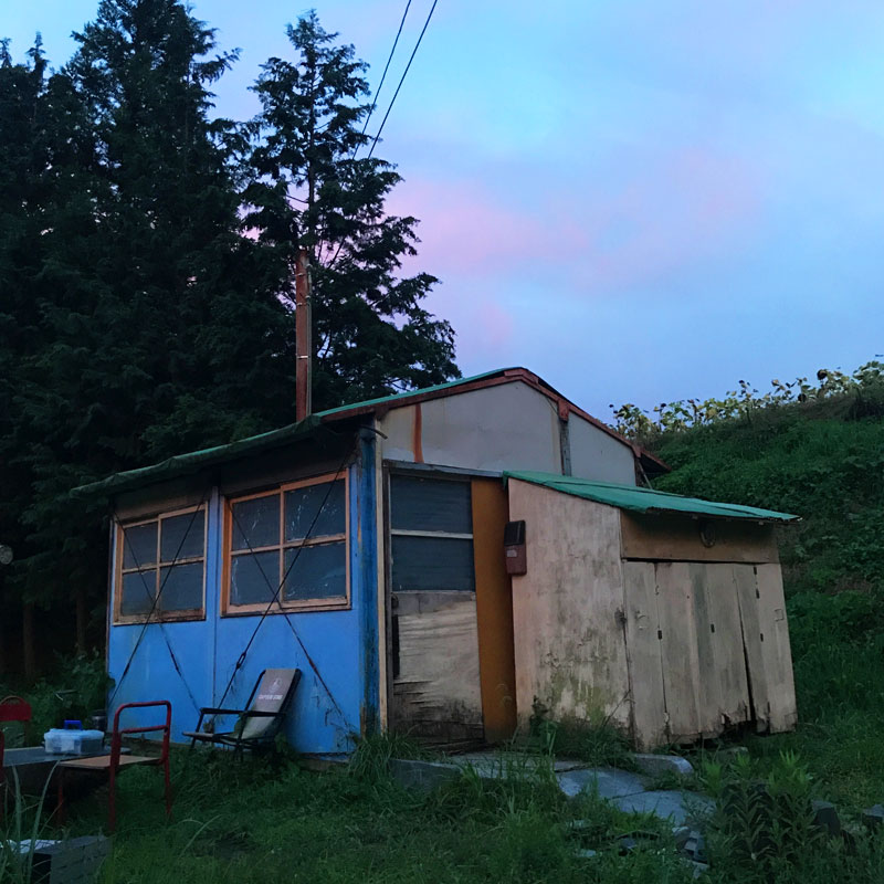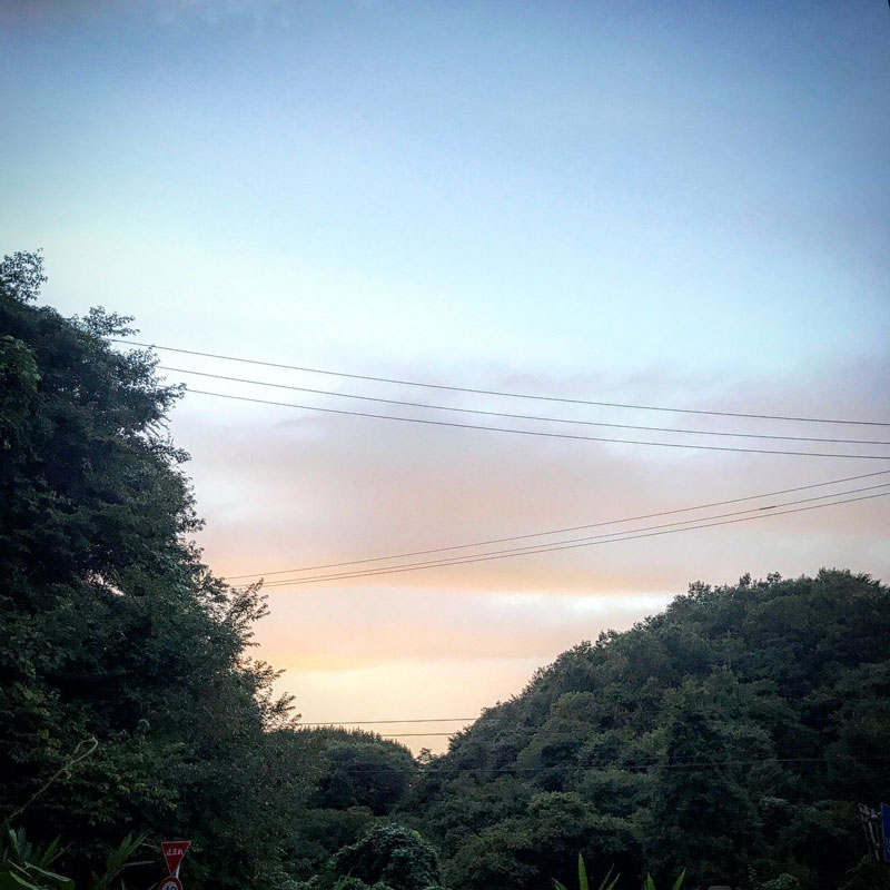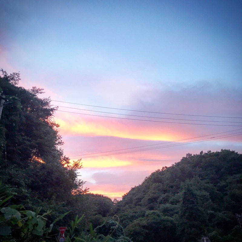 彫刻をプレハブ小屋にしまって鍵をかけて振り返ると空がうっすら焼けていた。一枚写真を撮って帰ろうとした6時過ぎ。