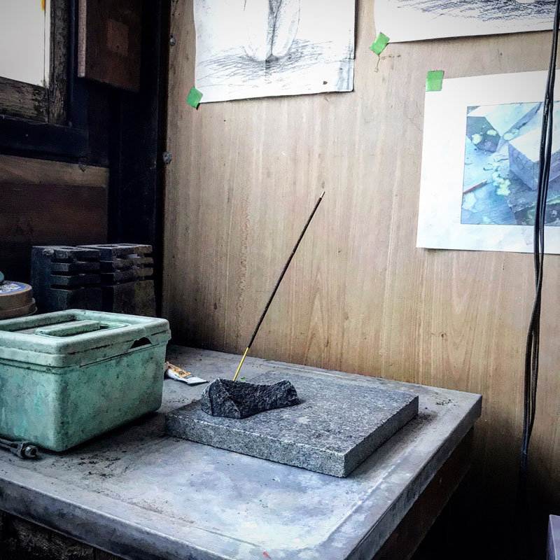 お香を焚いてリラックス。制作中の新作のひとつの山場を今日迎えるから。石で作るには難しい形。折れてしまうかもしれない。