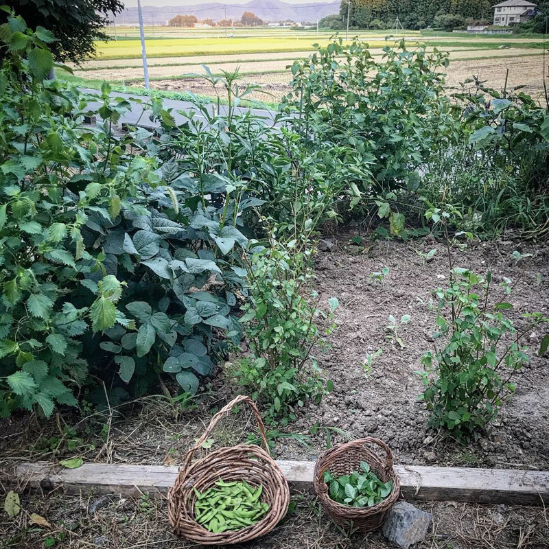今宵の居酒屋我家のために、畑から美味しい茶豆の枝豆とモロヘイヤを収穫。代わり映えしなくてもこの時期はこれだけあればとても幸せ。