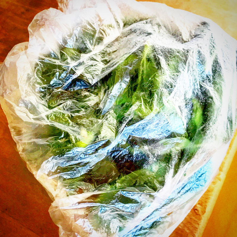 昨日、抜いた最後のバジルを冷凍した。パリパリになってるので揉めば粉々になって振りかけられる。