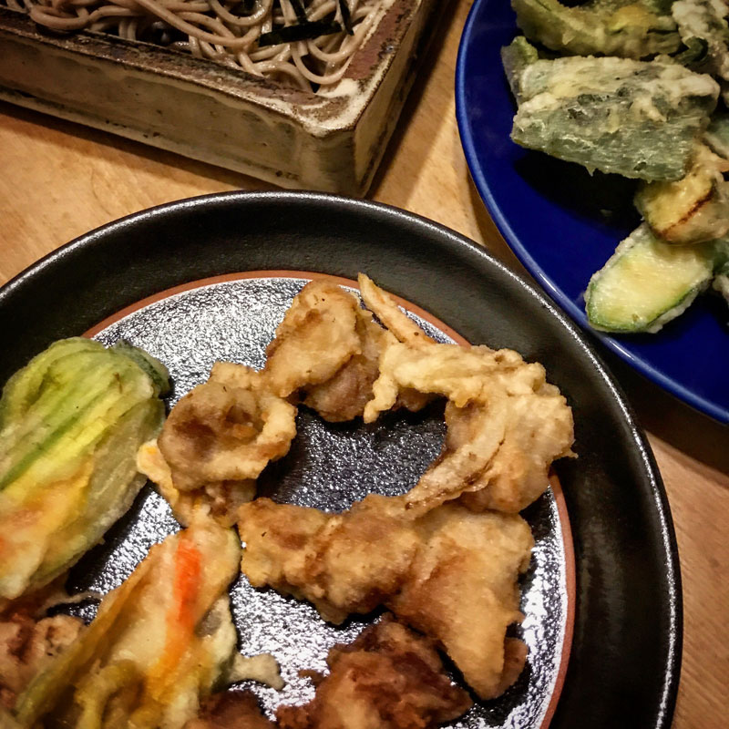 朝、採った小さな花付きズッキーニは実も花も天ぷらに。花、美味しい。