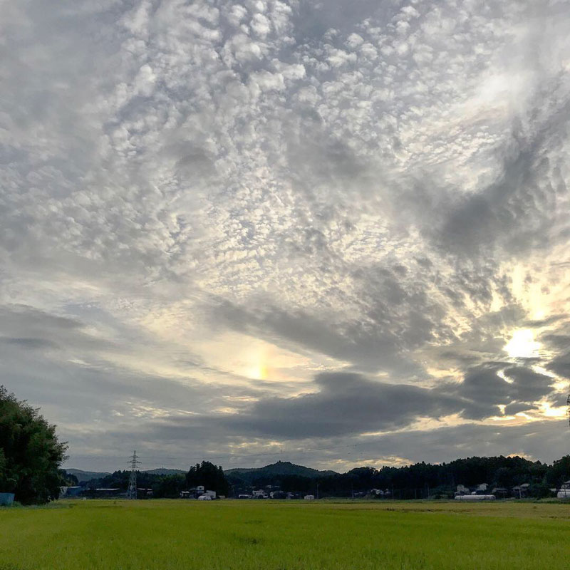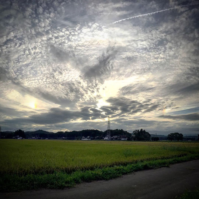 夕方、幻日が見えた。中央の太陽の左右に同じ高度に小さな虹。