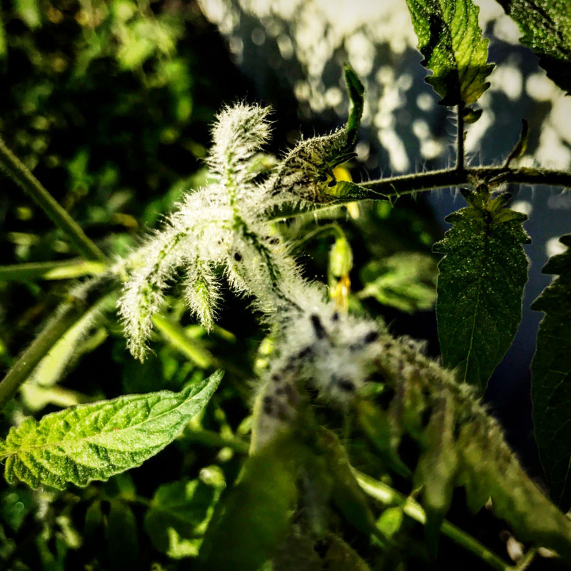 早朝、ミニトマトについた朝露。