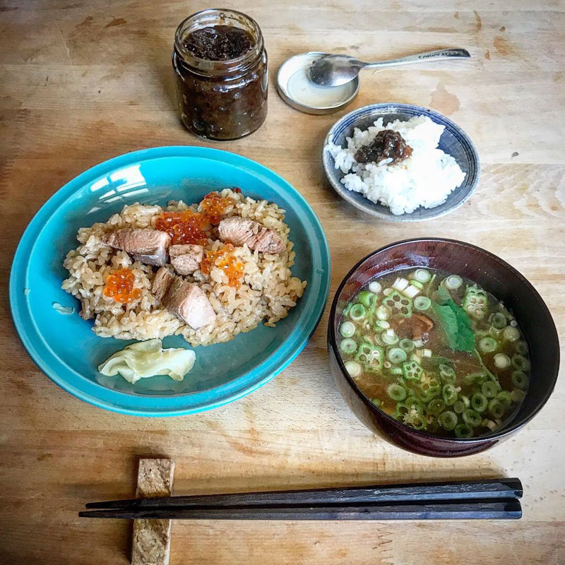 それでも節にせめて一度は食べないと寂しい。鮭の煮汁で炊いたご飯に身と卵を和えたもの。